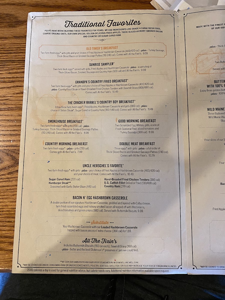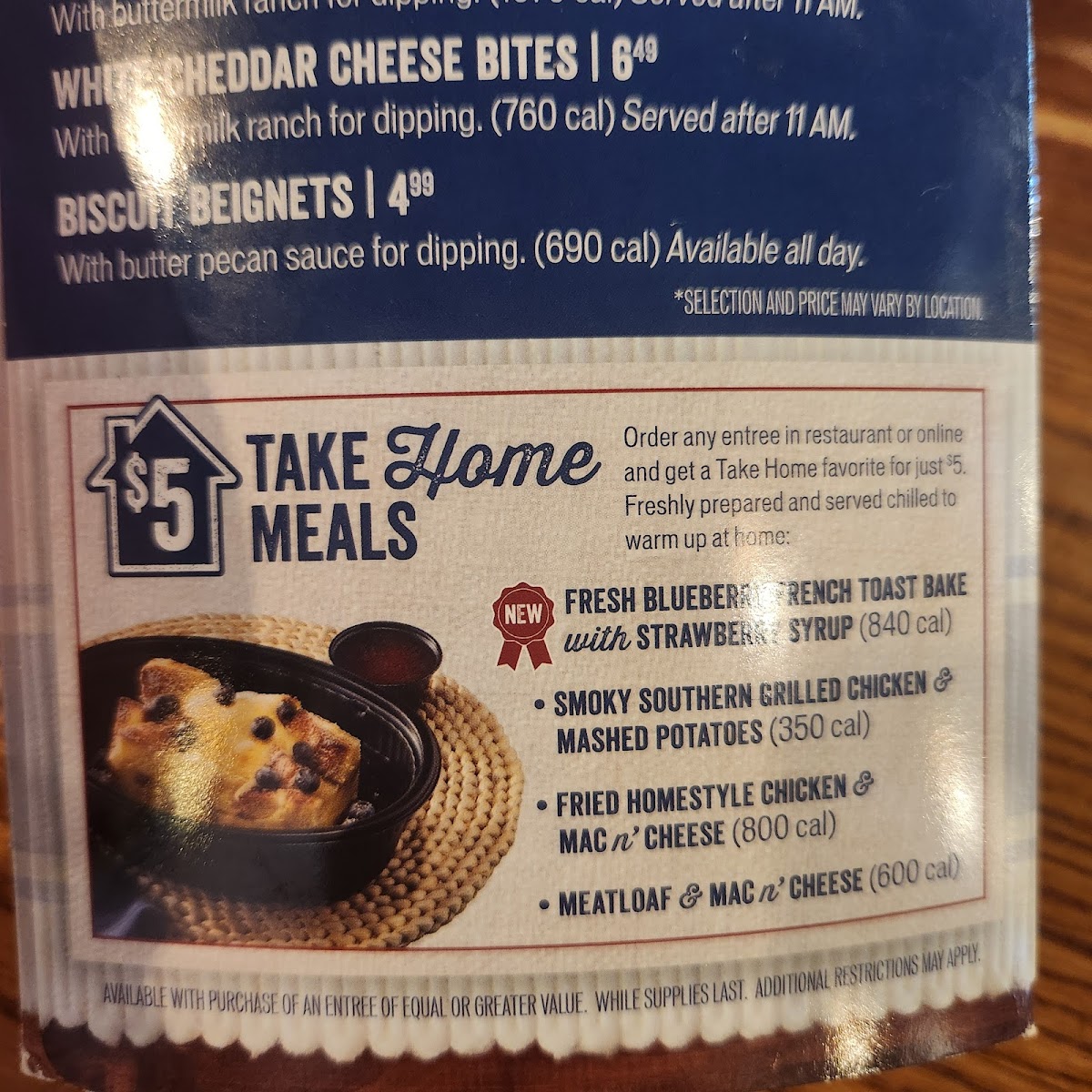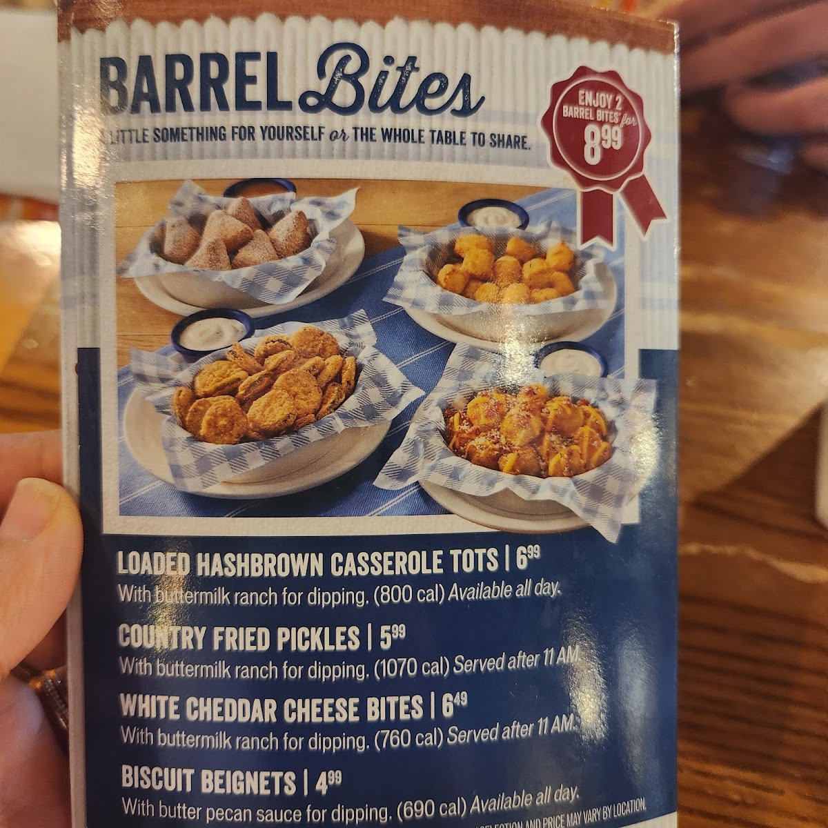 Cracker Barrel Old Country Store offers a comforting taste of traditional Southern and American cuisine in a warm, rustic setting. Known for hearty, homestyle dishes, the menu shines with all-day breakfast staples like the New York Strip Steak & Eggs and the classic Sunrise Pancake Special, featuring fluffy buttermilk pancakes paired with eggs or thick-cut bacon. Signature sweets such as Biscuit Beignets and Peach Cobbler evoke that nostalgic Southern charm, while savory options like the Hashbrown Casserole Shepherd’s Pie and slow-braised Pot Roast highlight the brand’s dedication to comforting, flavorful meals.